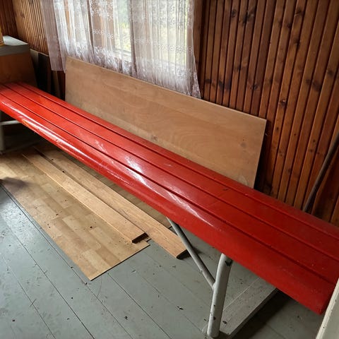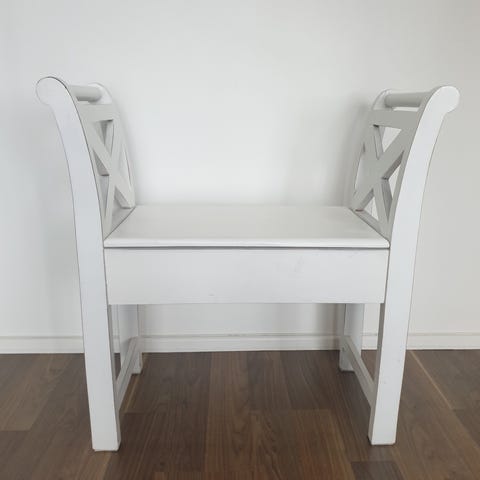 Muuten erittäin hyvässä kunnossa oleva penkki esim eteiseen, mutta kuten kuvassa näkyy, istuin osassa kulumaa. Vaatii siis pientä hiontaa tms.