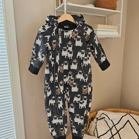 Siisti käytetty lindexin tummansininen pyöräkuvioitu haalari kokoa 86cm. Jonkin verran väri haalistunut saumojen kohdilta. Resoreissa pesunukkaa.