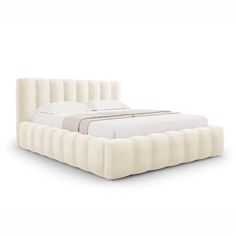 CXL by Christian Lacroix Ludivine -säilytyssänky sängynpäädyllä yhdistää ylellisen muotoilun ja käytännöllisyyden. Vaaleanbeigellä samettimaisella kankaalla verhoiltu muhkea sängynrunko ja koristetikkaukset luovat elegantin ilmeen makuuhuoneeseen. Etupuolelta avautuva kaasujousellinen säilytyslaatikko tarjoaa runsaasti tilaa, ja metallirunko joustavilla sälepohjilla takaa tukevan rakenteen. Selkätyynyjen täyte on polyuretaanivaahtoa, ja kestävä, pehmeä verhoilukangas on hankauksenkestävä ja paloturvallinen. Sänky myydään ilman patjaa.