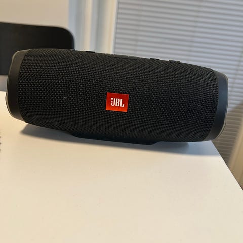 JBL Charge 3 kannettava kaiutin, musta väri. Kaiutin on suunniteltu kannettavaan käyttöön ja siinä on kestävä rakenne. Laitteessa on Bluetooth-yhteys langattomaan musiikin toistoon.