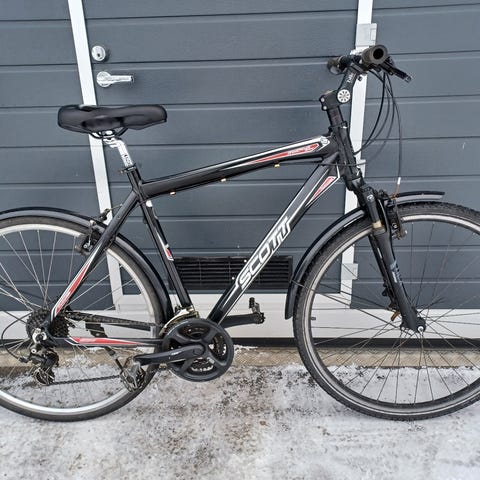 Huollettu 24-vaihteinen hybridipyörä. Alumiinirunko. Levyjarrut. Joustokeula. Hyvät Schwalben nastarenkaat edessä ja takana. Uusittu kasetti, ketjut, takavaihtaja, vaihdevaijerit, etuvaihteen valitsin, takajarrun vaijeri ja jalustin. Renkaat 28". Runkokoko 59 cm (suositus yli 180 cm pituisille).