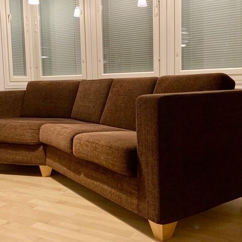 Sohvan päällisiä ei ole yritetty pestä, tahroja siis löytyy, mutta luulen että pesemällä lähtee.