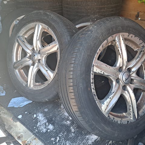 Ylimääräiset nastarenkaat vanteineen. Pintaa n. 8mm ja nastat hyvin paikoillaan