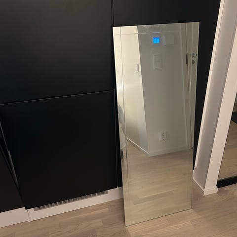 Myydään peili, jossa koristeelliset kehykset ympärillä. Peilissä "jalat", jolla pysyy pystyssä.