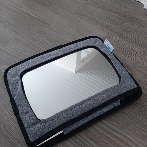 Tästä lapselle auton niskatukeen kiinnitettävä peili, jonku verran on peilissä naarmua