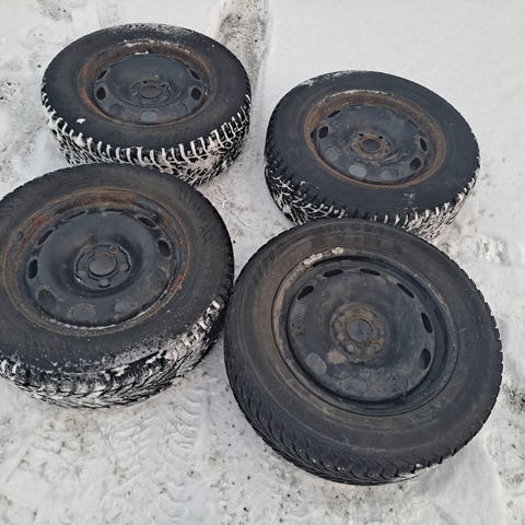 Ylimääräiset kesärenkaat vanteilla. Kumeilla varmaa ajelee sen pari kesää ainakin.