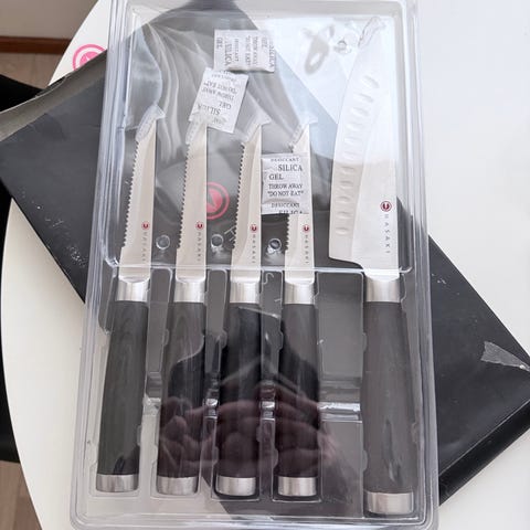 Siisti setti puuttuu haarukka ja teroitusveitsi.