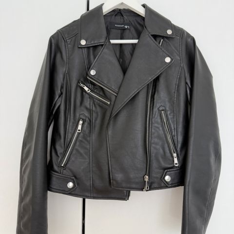 KÄYTTÄMÄTÖN JA UUSI. Bubbleroom Muu takki musta tekonahka, naisten koko 34. Takki on valmistettu tekonahasta ja siinä on musta väri.