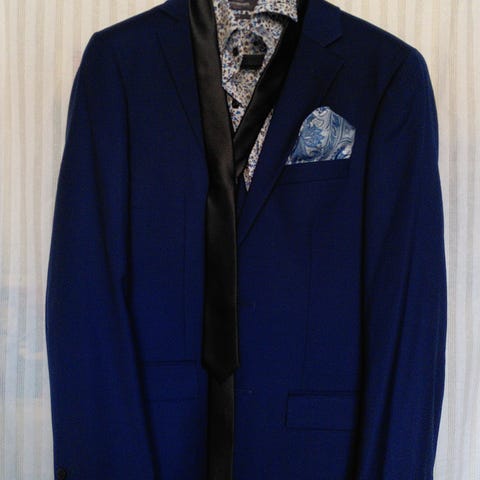 Dressmann- merkkinen villasekoite puku. Väri tummansininen,