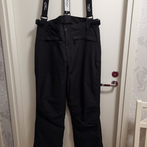 Naisten uudenveroiset lasketteluhousut, koko 44. Vyötärössä tarrakiristykset. Edessä vetoketjutaskut molemmin puolin. Toisessa lahkeessa reisitasku vetoketjulla. Lahkeensuissa kuminauhapussit näppärikiinnityksellä.