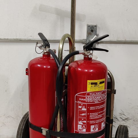 Tulityöpaikan jauhesammuttimien kuljetuskärry, jossa on paikat kahdelle jauhesammuttimelle ja kahdelle sammutus-/suojapeitteelle. Toimitusehto vain nouto ja maksuehto vain käteinen.