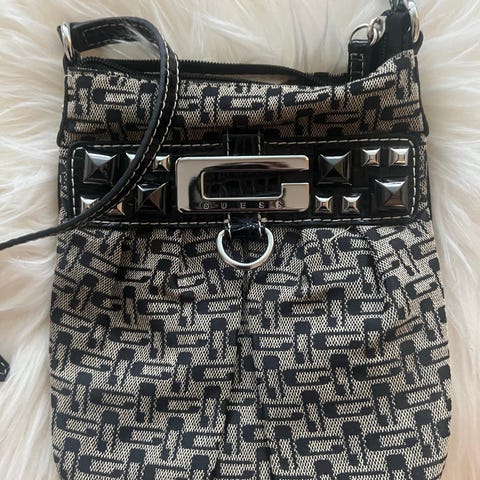 KUIN UUSI/LÄHEN KÄYTTÄMÄTÖN. Ei enään kaupoissa saatavilla. Guess kangasmateriaalia oleva olkalaukku naisille. Laukussa on vaaleanpunainen ja valkoinen kuosi, jossa toistuu Guess-logo. Varustettu säädettävällä olkahihnalla ja vetoketjulla. Sopii arkikäyttöön ja kevyiden tavaroiden kantamiseen ja vaikka mihinkä tahansa jee!!