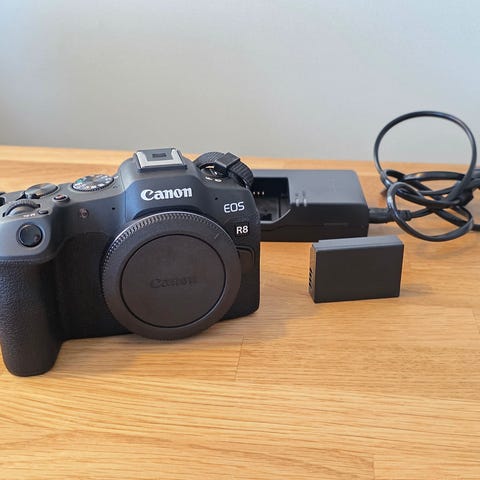 Canon R10 kamerapaketti. Sisältää Canon R10 järjestelmäkameran, RF-S 18-45mm objektiivin, laturin, akun, 128gt muistikortin, kolmijalan, loittorengas setin, ja laukun.