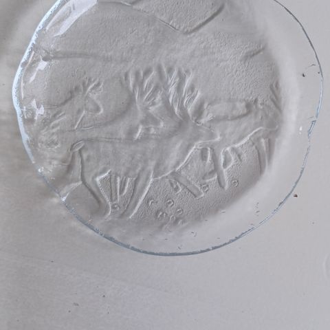 Muurlan lintuaiheinen lasilautanen. Lautasen halkaisija 19 cm. Postitus onnistuu. Postikulut lisätään.