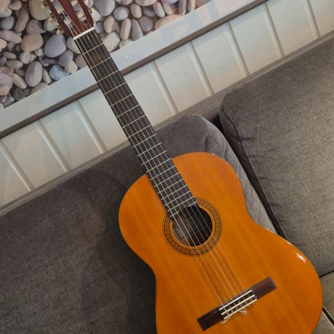 Student-merkkinen nailonkielinen kitara, kielet ihan hyvässä kunnossa ja kaikki ehjänä.
