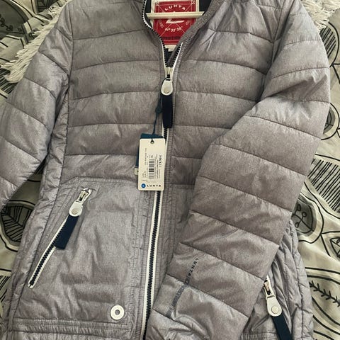 Myydään hyvässä kunnossa oleva Luhdan kevyttoppatakki. Väri tummansininen ja koko 34. Takissa on kaksi vetoketjullista taskua.