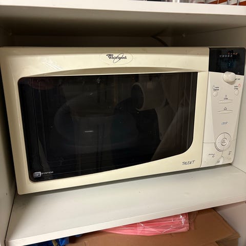 Suunnilleen sama malli kyseessä. Mukana pitsalevy. Valo palanut. Muuten hyvä ja monitoiminen kone.