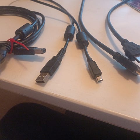 Saattaa olla muutama mitä en ole maininnut. Kaikki kerralla. Laatikko ja pienille johdoille säilytypussi tulee mukaan.