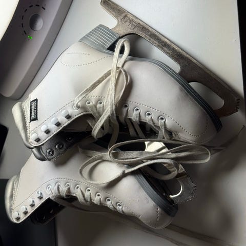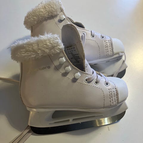 Tecnopro lasten luistimet, koko 28. Väri valkoinen. Käytetty luisteluvaruste, soveltuu muun luistelun harrastamiseen.