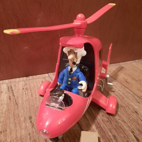 Myydään Postimies Pate helikopteri. Helikopterissa on äänet. Nappia painamalla kuuluu Postimies Pate musiikki. Helikopterissa on aukeavat ovet.