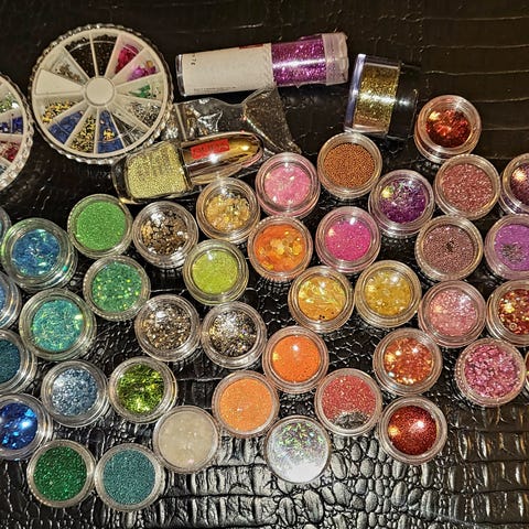 Myydään 21 purkkia (5ml) erilaisia glittereitä kynsien tekoon tai muuhun käyttöön. Kaikki ostettu Kynsimaailman kautta ja valmistettu EU:ssa. Mukana saa myös kynsileikkurit. Osa väreistä on kokonaan avaamattomia ja osa vähän käytettyjä.