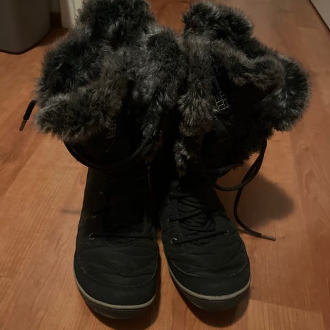 Columbiab lämpimät nauhalliset talvikengät, jotka sopivat erityisen hyvin loskakeleihin kumisaapasmaisen alaosan ansiosta. Ostettu syksyllä 2025. Käytetty vain muutaman kerran. Koko 38,5. Alkuperäinen ostohinta 99 €.