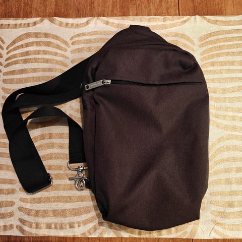 Marimekko tilava crossbody-laukku, musta väri. Laukussa on vetoketjutaskut ja säädettävä olkahihna. Soveltuu arki- ja juhakäyttöön. Pientä olkalaukkua tilavampi, mukaan mahtuu sateenvarjo tai vähän vaatetta. Istuu hyvin päällä.