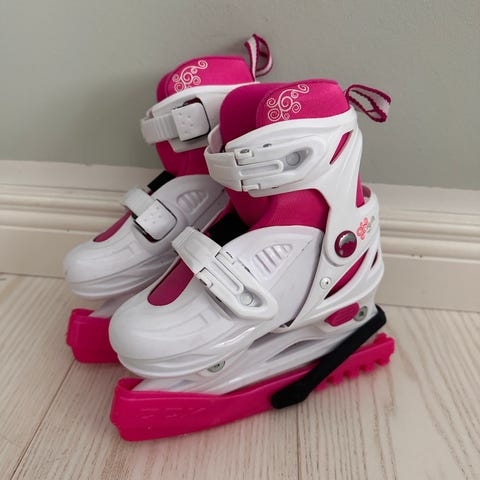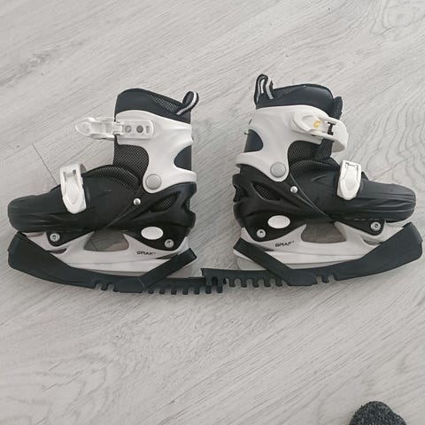Myydään viime talvena uutena ostetut jatkettavat harjoitus luistimet kokoa 31-34. Luistimet erittäin hyvässä kunnossa, mutta toisen luistimen nauha vähän auennut, kun tarttunut tarraan kiinni. Luistimissa lämmin vuori