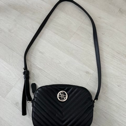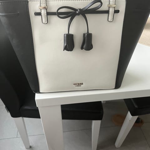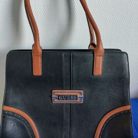 Aito musta guess olkalaukku hyvässä kunnossa vähän irtonut nahkaa reunoista mutta muuten todella ehjä.