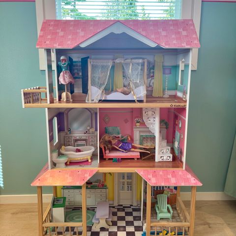 Myydään tykätty iso nukketalo kalusteineen. Tänne mahtuu barbiekin seisomaan.