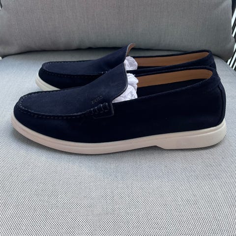 Tyylikkäät ja pari kertaa käytetyt loaferit, jotka itselle on hitusen liian isot. Koko sanoo 43, mutta mielestäni fittaa enemmän 44 jalalle (sillä itsellä 43 1/2 ja liian isot). Kengät ovat puuhtaassa kunnossa ja tuntuvat mukavalta jalassa.