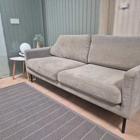 Käytetty 3 istuttava sohvassa vaalean beigen värisellä irtopäällisellä.