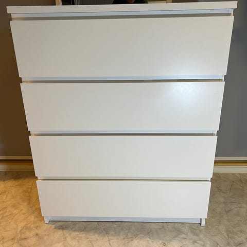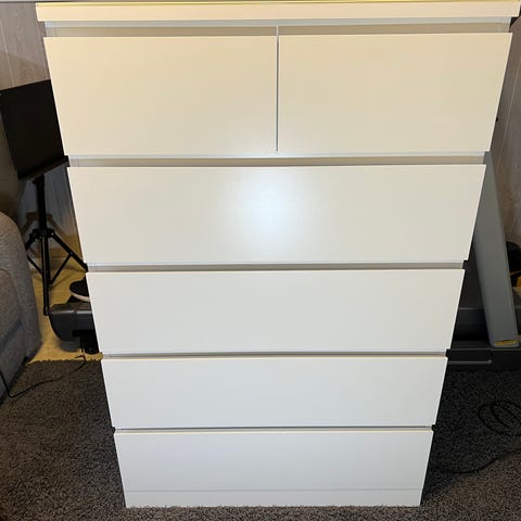 Myydään Ikean Malm-lipasto, 6 laatikkoa ja lasikansi.