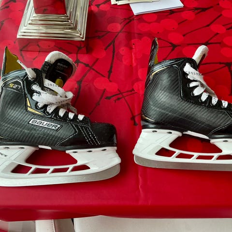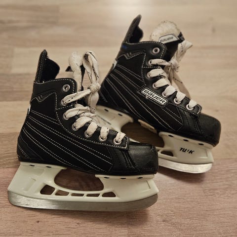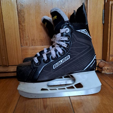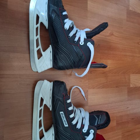 Hyväkuntoiset Bauerin lasten hokkarit koossa 32 / Y13, pohjallisen pituus 20,4 cm. Eivät ehtineet meillä olla kuin ehkä enintään 10 kertaa jalassa, kun jäivät jo pieneksi. Teroitettu viime talvena, mutta käytetty sen jälkeen varmaan sen kerran, joten ovat heti käyttövalmiit.