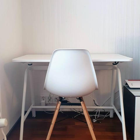 Myydään muuton vuoksi hyväkuntoinen säädettävä valkoinen TROTTEN työpöytä ja siihen sopiva valkoinen VATTENKAR hylly. Halutessa kaupan päälle saa myös lattialla näkyvän 100x120cm KOLON lattiasuojan. Muut kuvissa näkyvät tuotteet eivät ole myynnissä.