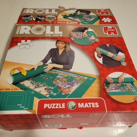 Myydään käyttämätön palapelimatto, jonka avulla keskeneräisen palapelin voi kääriä näppärästi rullalle.
