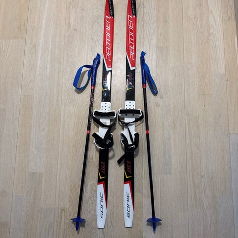 Peltonen Sonic Lasten suksi paketti 110cm + sauvat 80cm. . Helppokäyttöiset Rottafella (nnn) siteet. Suomupohja eli ei tarvi voitelua. Sukset max 10 kertaa hiihdetty siis todella hyvässä kunnossa. Mukaan myös monot 32 pohjallisen pituus 20,5