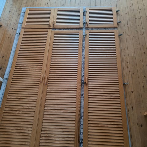 2 kpl käyttämättömiä , puuvalmiita mäntysäleovia, saranat , 2 vedintä ,Svedbergs pieni naulakko