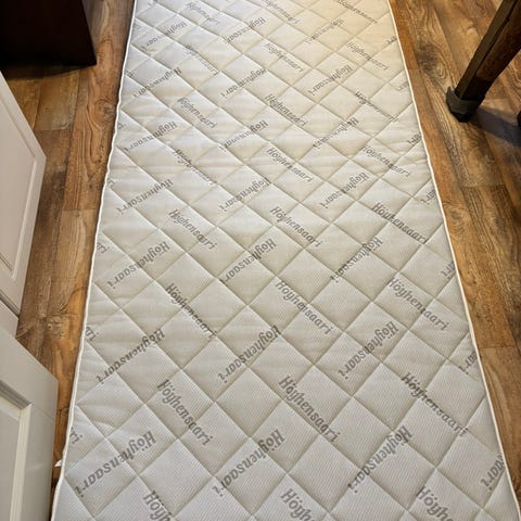 Muutaman viikon käytössä ollut petauspatja. Yritettiin elvyttää vanha sänky uudella petarilla, mutta ei auttanut, joten tämä nyt jouten.
