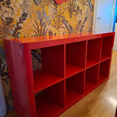 Myyntiin ylimääräiseksi jäänyt Ikean 5x1 Kallax hylly.