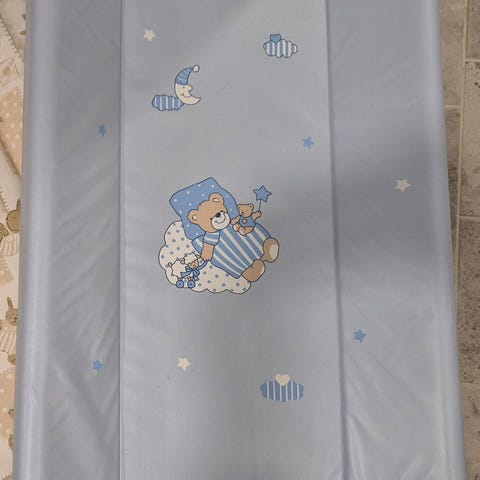 Hoitoalusta merkiltä Petite Chérie. Vaaleanvihreä valkoisella kuviolla. Päällinen pesty. Ei moitteita kunnossa. Ollut yhdellä vauvalla käytössä.