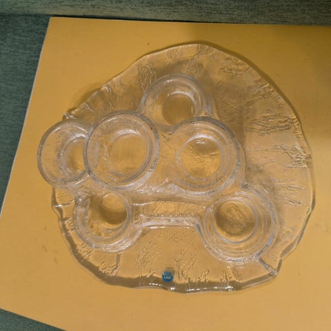 Myydään kaunis lasinen tuikkualusta, paikat 6 kynttilälle.