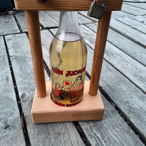 Iso pullo jossa sopivasti ajan patina näkyy, teline hieman ruosteessa jne. Ollut koristeena valojen kanssa. Nuo neljä eriväristä patterivalosarjaa saa samaan hintaan.