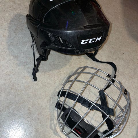 Lähes uutta vastaava M-koon CCM FM50 kypärä ristikolla. Käytetty muutaman kerran koululiikunnassa.