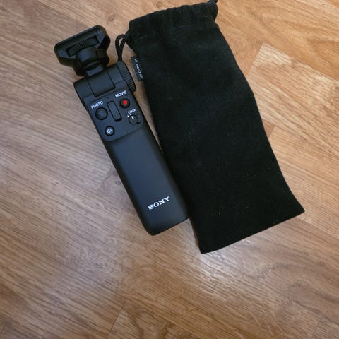 Sony kameroiden kanssa yhteensopiva kuvauskahva kaukosäätimellä. Paljon käytetty, mutta toimiva.