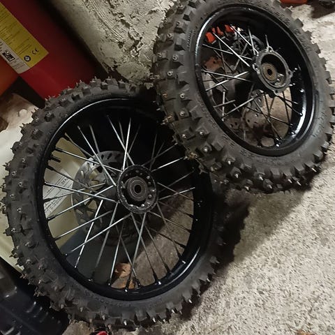Myydään 2kpl michelin 15 tuuman piikkirengasta 4x108 vanteilla, o5o5999332