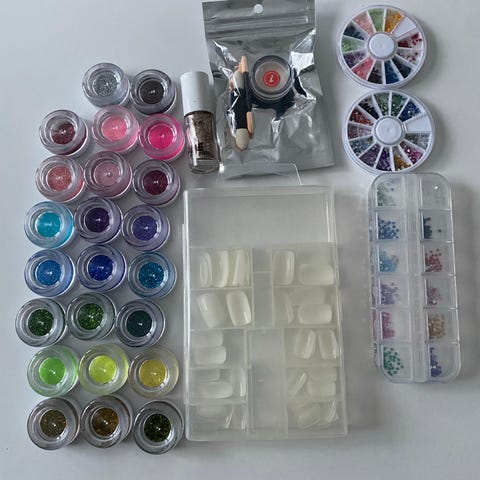 Myydään kattava kynsitarvikesetti – lakkoja, koristeita ja geelimaaleja