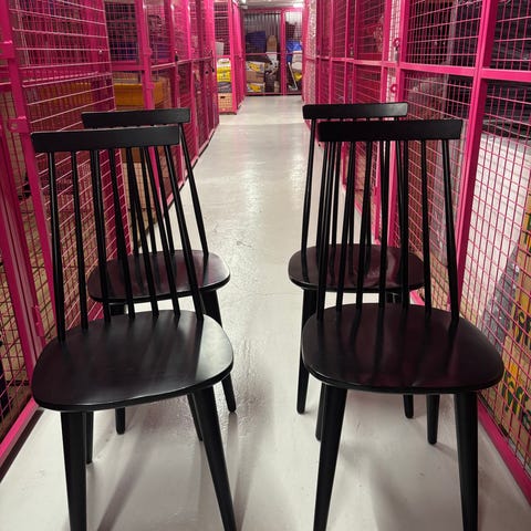 Istuinkorkeus 46 cm, -leveys 43 cm & -syvyys 39 cm. Valmistettu puusta, maalattu valkoiseksi. Kantavuus 110 kg. Ovh. 99 euroa/kpl.