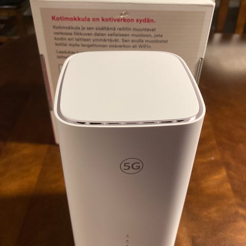 DNA Netti Kotimokkula 5G WiFi H158 modeemi tukee 4G- ja 5G-verkkoja. Laite on tarkoitettu langattomaan internetyhteyteen kotikäytössä. Mukana tulee virtalähde.