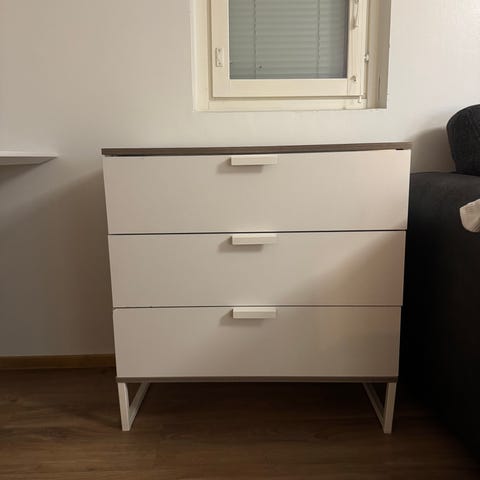Myydään kaunis pieni valkoinen lipasto. Ehkä ja hyväkuntoinen, laatikot kulkevat hyvin. Ainoastaan yläosan pinnassa maalissa hieman kuluma jälkiä.